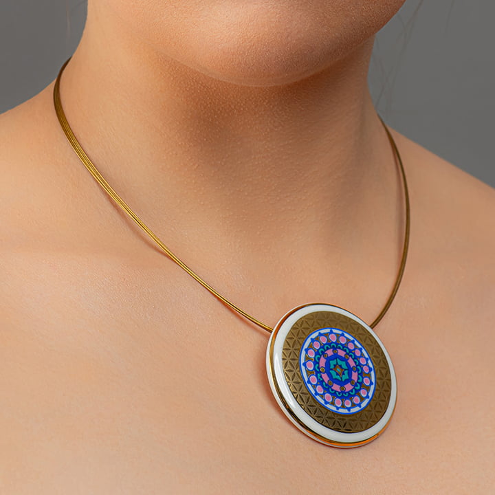 Veľký okrúhly prívesok z jemného porcelánu z púštneho zlata