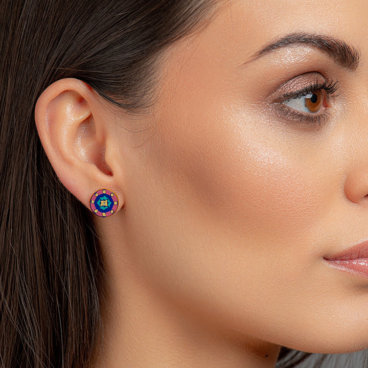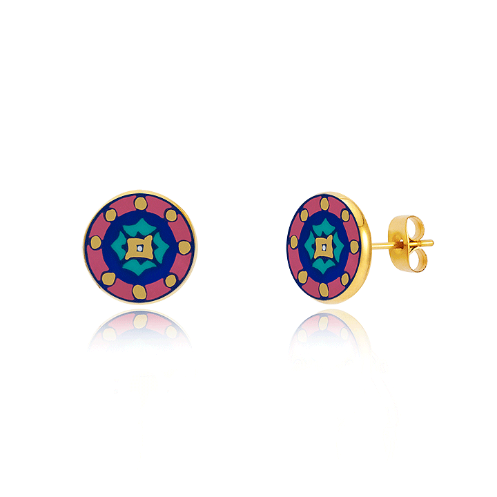 Púštne zlaté jemné porcelánové ružovo-modré náušnice