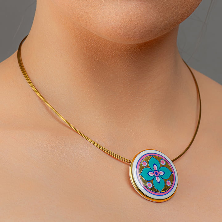 Púštny zlatý jemný porcelánový ružovo-modrý okrúhly prívesok (malý)