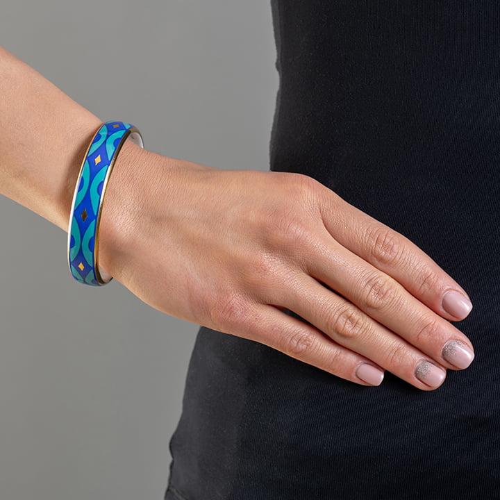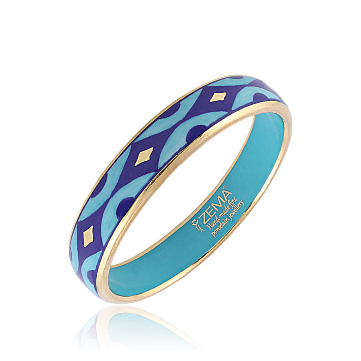 Púštny zlatý jemný porcelánový tenký modrý náramok
