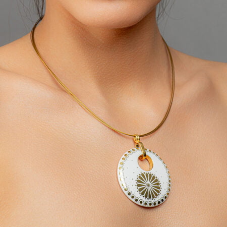 Jemný porcelánový oválny prívesok so vzorom bielych dier 56 € – 77 €Price range: 56 € through 77 € Do košíka