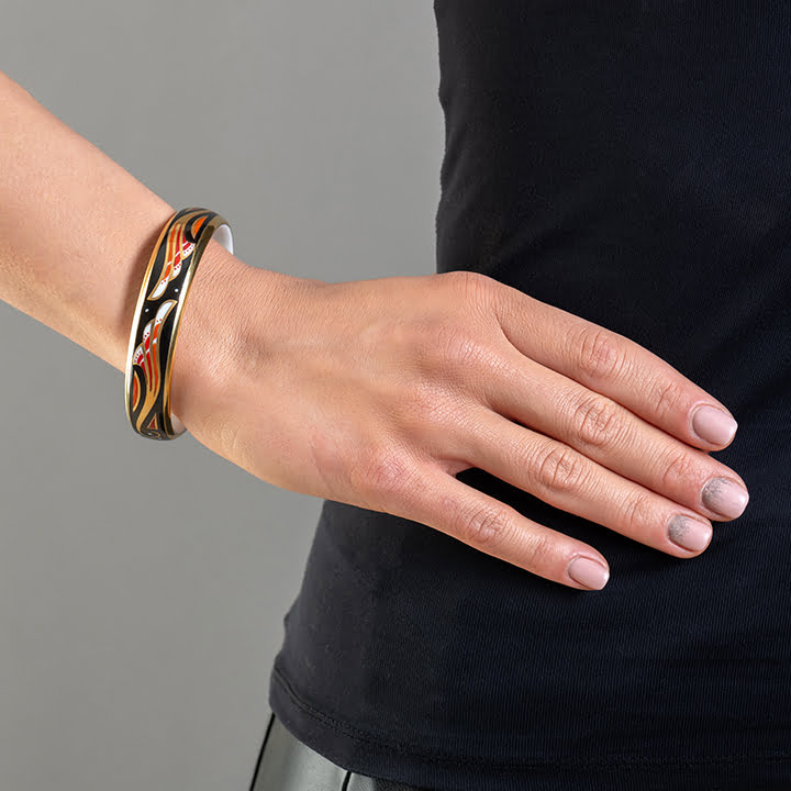 Art Deco červený jemný porcelánový náramok