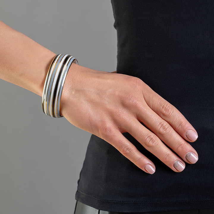 Čierno-šedo-zlatý náramok z jemného porcelánu Candy