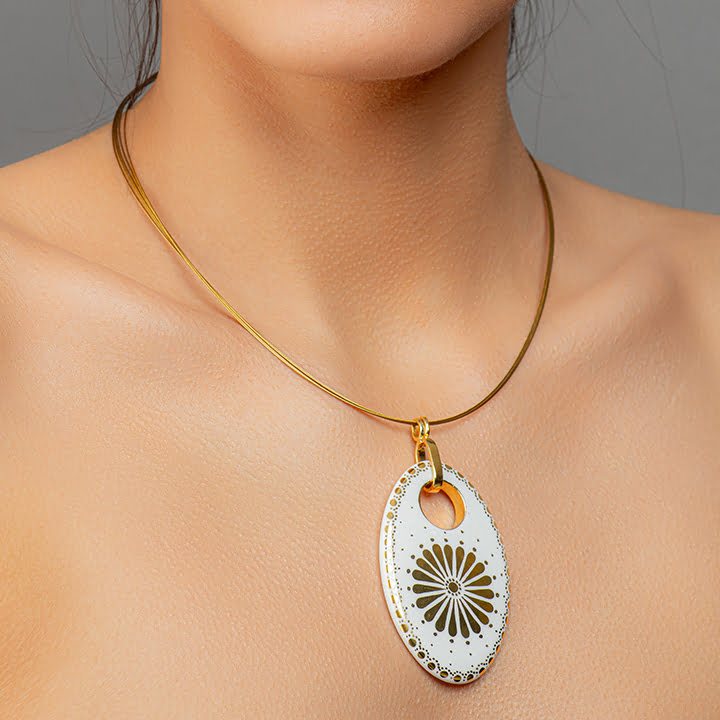 Jemný porcelánový oválny prívesok so vzorom bielych dier