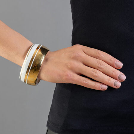 Minimálna biela a zlatá okrúhla manžeta z jemného porcelánu