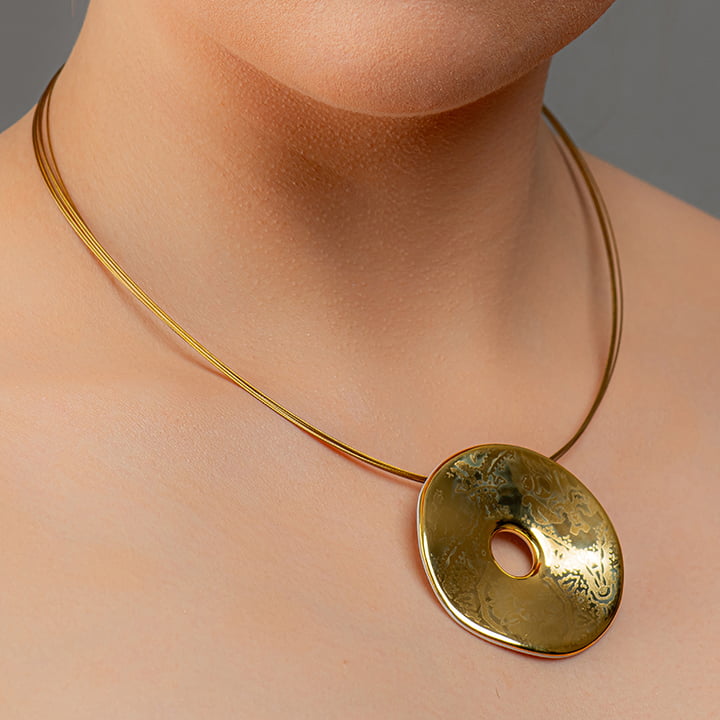 Jednoduchý zlatý okrúhly prívesok z jemného porcelánu