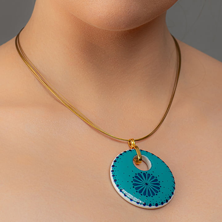 Tradičný tyrkysovo modrý prívesok s jemným porcelánovým vzorom