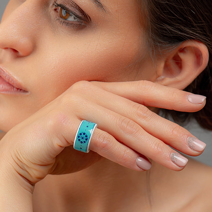 Jemný porcelánový prsteň s tyrkysovo modrým vzorom otvorov