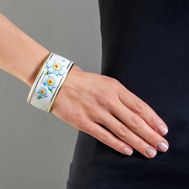 Široký náramok z jemného porcelánu Nefelejcs
